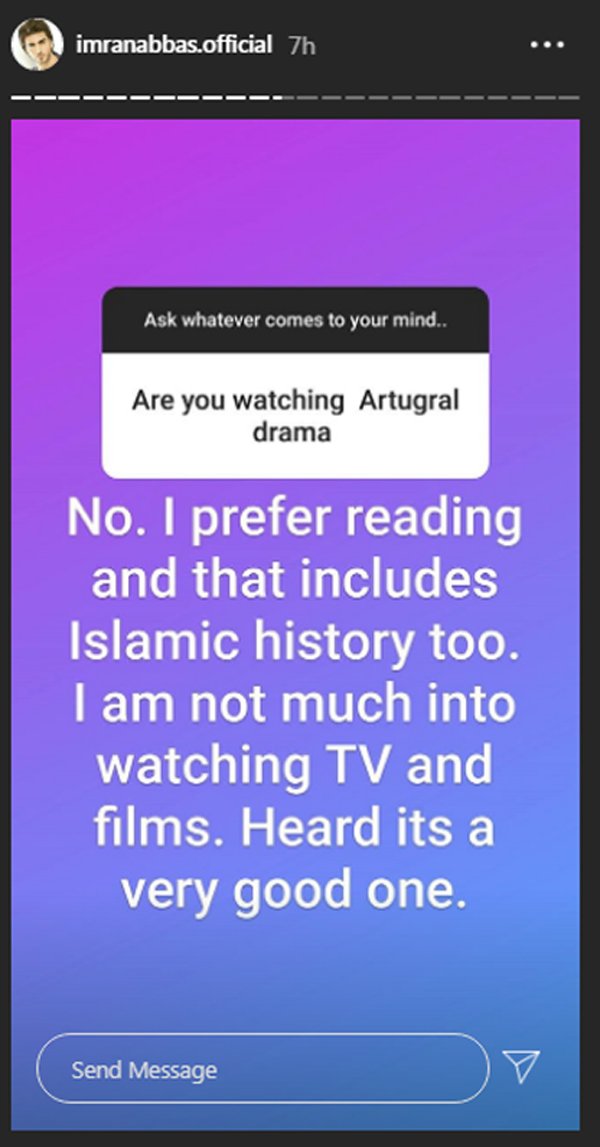 Responding to a question related to Ertugrul Ghazi, the actor said that he is not very much fond of watching television or films.
